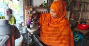 মাহিদা বেগম (৪০)। স্বামী মৃত আবু বকর হাওলাদার । ক্যান্সারে আক্রান্ত হয়ে গত এক মাস আগে মারা গেছেন আবুবকর। স্বামীকে হারিয়ে এখন তিন সন্তান নিয়ে অভাবে দিন কাটাচ্ছেন তিনি। তবে সন্তানদের স্বপ্ন বাঁচাতে ও সংসারের অভাব দূর করতে ভাড়ায় নেওয়া একটি চায়ের দোকানই একমাত্র সম্বল। সন্তানের স্বপ্ন বুনছেন চায়ের কাপে।