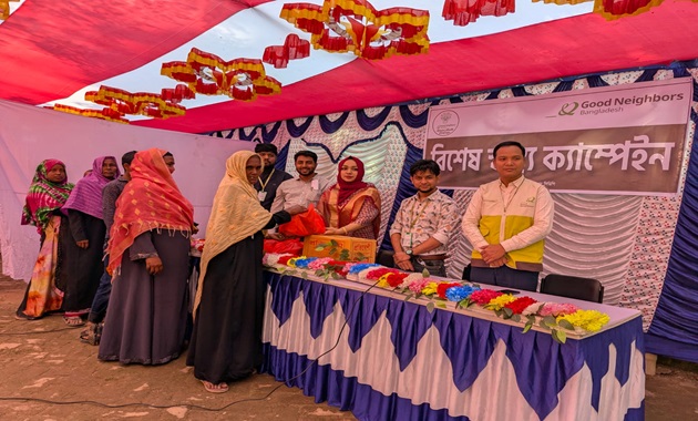 মেহেরপুরের মুজিবনগরে গুডনেইবারস বাংলাদেশ মেহেরপুর সিডিপির উদ্যোগে মেহেরপুর সিডিপি বল্লভপুর প্রজেক্ট অফিস প্রাঙ্গণে বিশেষ স্বাস্থ্য ও পুষ্টি ক্যাম্পেইন অনুষ্ঠিত হয়েছে।বৃহস্পতিবার সকালে স্বাস্থ্য ও পুষ্টি ক্যাম্পেইন অনুষ্ঠানের সিডিপি ম্যানেজার বিপুল রেমার সভাপতিত্বে, প্রধান অতিথি হিসেবে উপস্থিত ছিলেন, গাইনাকোলজিস্ট ডা: সিনথিয়া আফরিন সিমি এবং খাদ্য ও পুষ্টিবিদ ফজলে রাব্বি।হেলথ অফিসার আহসানুল হক সঞ্চালনায় ক্যাম্পেইনে আরও উপস্থিত ছিলেন, সিডিপির সিনিয়র এডমিন অফিসার উত্তম কুমার রায় এবং মেডিকেল অফিসার মেহেদী হাসান (সুইট)।ক্যাম্পেইনের মূল কার্যক্রম মা ও শিশুদের স্বাস্থ্য বিষয়ে আলোচনা, পুষ্টিকর খাবারের উপকারিতা ও সুষম খাদ্যাভ্যাস বিষয়ে দিকনির্দেশনা প্রদান করা হয়।ক্যাম্পেইনে স্বল্পমূল্যে গাইনি রোগী দেখা এবং অপুষ্ট শিশুদের জন্য ডায়েট চার্ট প্রদান করা হয়ে।এছাড়াও কমিউনিটির জন্য ৩০% ছাড়ে স্বাস্থ্য সুরক্ষা ও পুষ্টি প্যাকেজ সরবরাহ করা হয়ে।গুডনেইবারস বাংলাদেশ জানায়, এই ক্যাম্পেইনের মাধ্যমে কমিউনিটির মধ্যে সুলভ সেবা, স্বাস্থ্যসচেতনতা বৃদ্ধি এবং পুষ্টি জ্ঞান সম্প্রসারণে গুরুত্বপূর্ণ অগ্রগতি সাধিত হয়েছে।