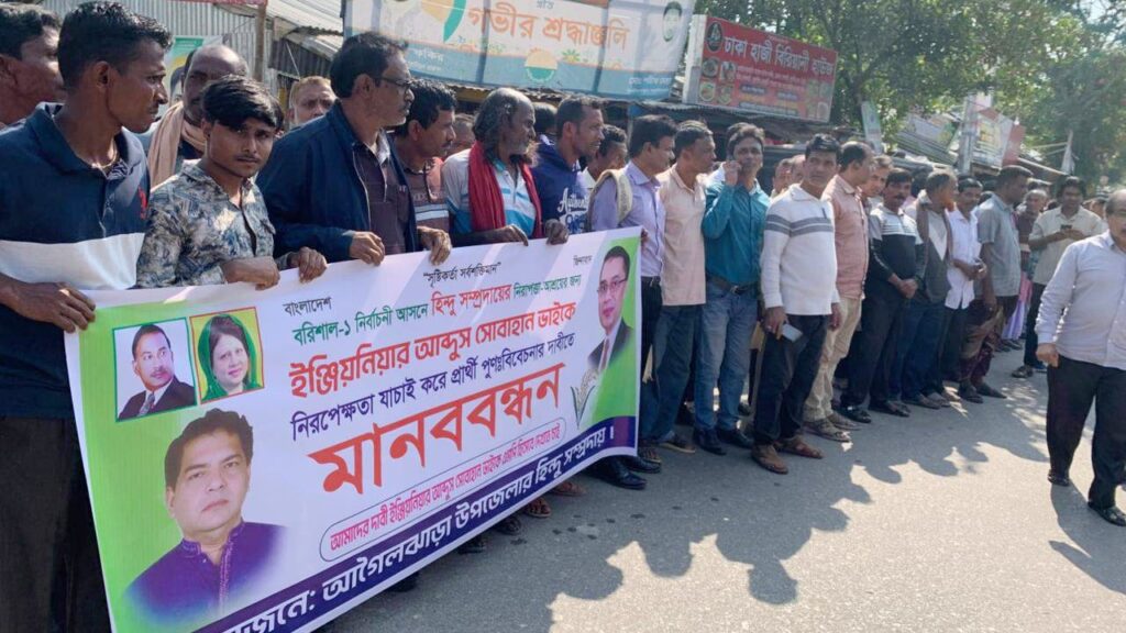 বিএনপির মনোনয়ন পরিবর্তনের দাবিতে হিন্দু সম্প্রদায়ের মানববন্ধন