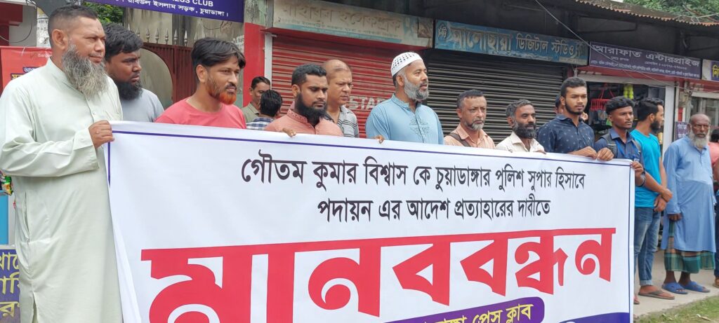 এসপি গৌতমকে চুয়াডাঙ্গায় পদায়ন, প্রত্যাহার দাবিতে মানববন্ধন