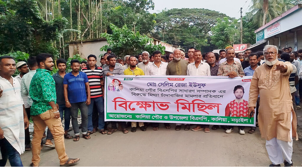 নড়াইলে বিএনপি নেতাদের বিরুদ্ধে আ’লীগের মামলা, প্রতিবাদে বিক্ষোভ মিছিল