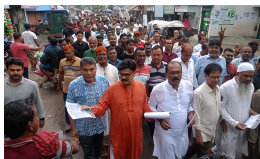 মেহেরপুরের আমদহে অ্যাড. কামরুল হাসানের লিফলেট বিতরণ ও গণসংযোগ
