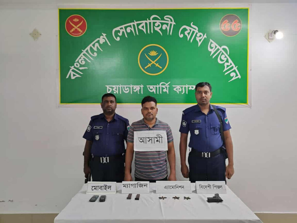 চুয়াডাঙ্গায় অস্ত্র ও গুলিসহ যুবক আটক